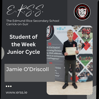 Well done to our Student of the Week winners - Shéa Foley (1st Year), Jamie O'Driscoll (2nd year) and Conor Diffily (5th year). All three students were nominated for their excellent work ethic and behaviour in school. Well done to all those student nominated by their teachers this week.